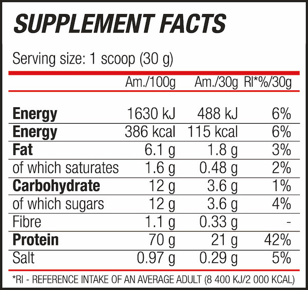 BLADE Protein is an excellent quality whey protein concentrate. The product is made from 87% whey protein concentrate, with a protein content of 21 grams per serving.