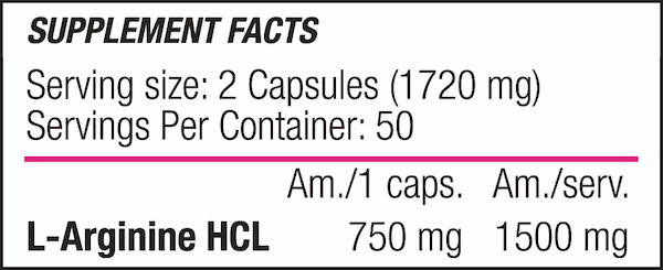 Ingredients: L-Arginine hydrochloride, hard gelatin capsule shell.
