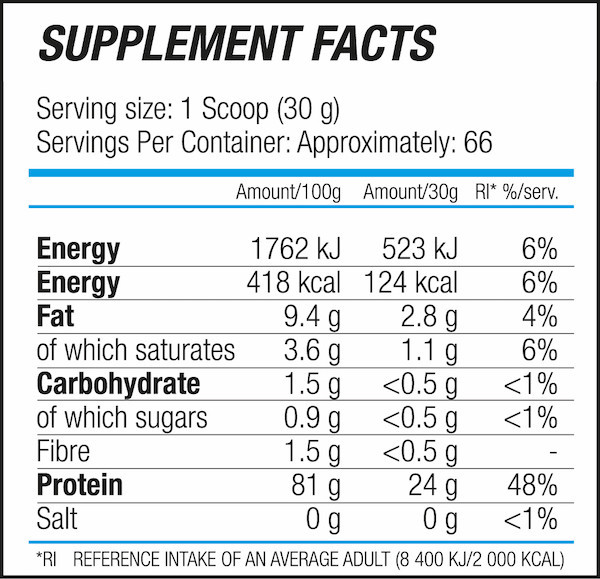 BLADE ISOLATE is a premium quality whey protein isolate that contains few carbohydrates and is gluten-, lactose-, and sugar-free.