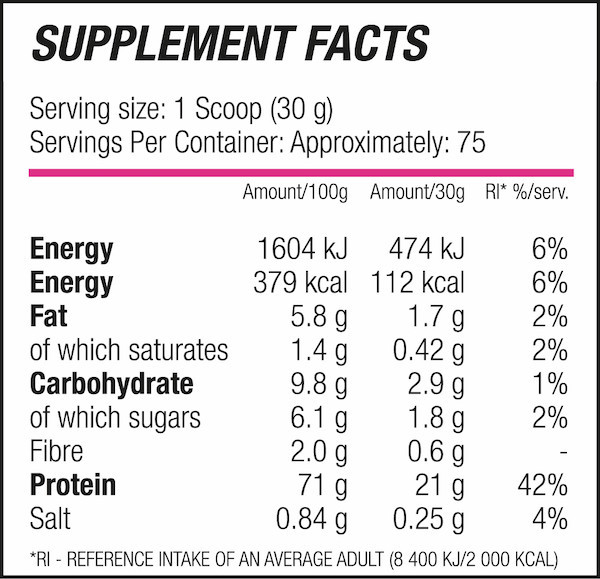 The formula features 76% whey protein concentrate and 11% whey protein isolate, providing 21 grams of protein and 4500mg of BCAAs in every serving. It utilizes whey protein (WPC, WPI) with great solubility and delicious flavors. The product contains no added sugar, but contains naturally occurring sugars!