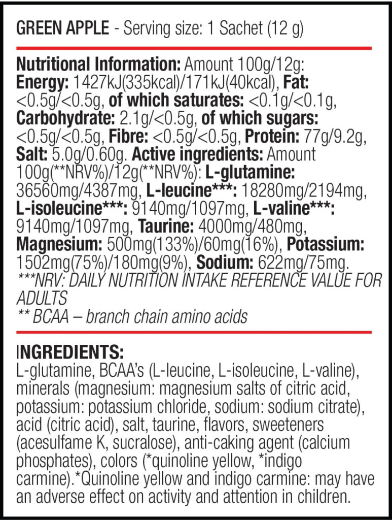 A complex, sugar-free BCAA and Glutamine formula in one, which promotes muscle building and the cross-sectional growth of muscles while also improving recovery.
