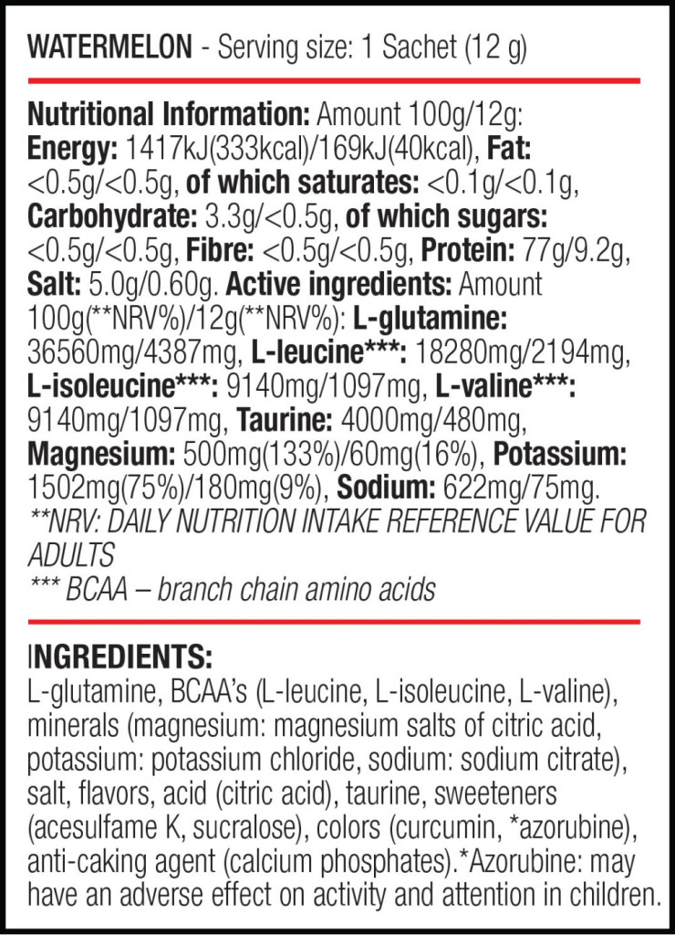 A complex, sugar-free BCAA and Glutamine formula in one, which promotes muscle building and the cross-sectional growth of muscles while also improving recovery.